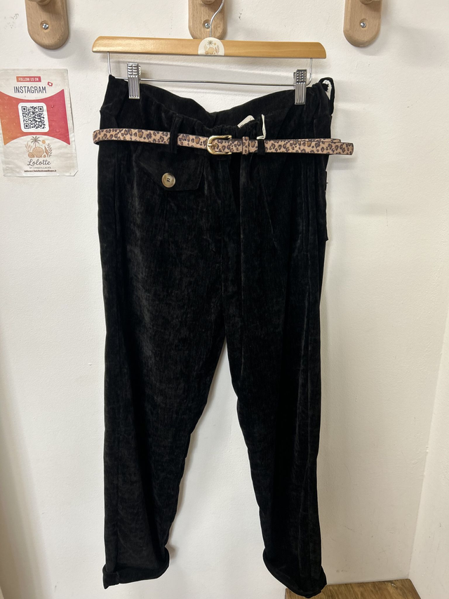 Pantalon Pera avec poche ceinture velours noir X 2 77% viscose 18% polyamide 5% elasthanne taille unique